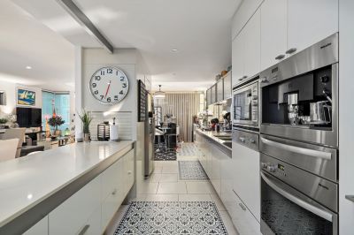 • Contemporary kitchen with quality Miele appliances, including coffee machine, microwave, gas cooktop and provision for a plumbed fridge
