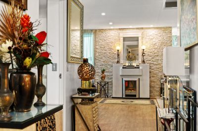 Beautifully finished with neutral tones and stone wall features!